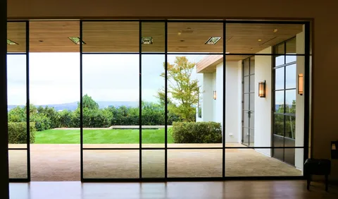A sliding glass window in this design ensures expansive transparency while maintaining structural integrity.​